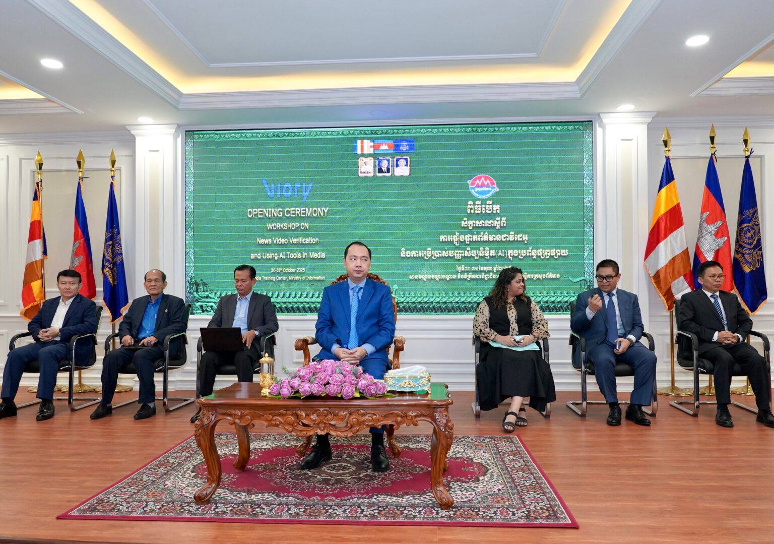 ភ្នំពេញ៖ សិក្ខាសាលាស្ដីពីការផ្ទៀងផ្ទាត់ព័ត៌មានជាវីដេអូ និងការប្រើប្រាស់បញ្ញាសប្បនិម្មិត( AI )ក្នុងប្រព័ន្ធផ្សព្វផ្សាយ រៀបចំឡើងដោយក្រសួងព័ត៌មាន ក្រោមកិច្ចសហការគាំទ្រពីក្រុមហ៊ុន Viory បានប្រារព្ធពិធីបើកនៅព្រឹកថ្ងៃទី៣០ ខែតុលា ឆ្នាំ២០២៥ នាសាលមណ្ឌលបណ្តុះបណ្តាល និងវិក្រឹតការវិជ្ជាជីវៈសារព័ត៌មាន ក្រោមអធិបតីភាព លោក នេត្រ ភក្ត្រា រដ្ឋមន្ត្រីក្រសួងព័ត៌មាន និងវត្តមាន លោកស្រី Nhishaeni Parmanadan តំណាងក្រុមហ៊ុន Viory ប្រចាំតបន់អាសុី និងវាគ្មិន ក្រុមការងារមកពីប្រទេស អេមីរ៉ាត់អារ៉ាប់រួម។