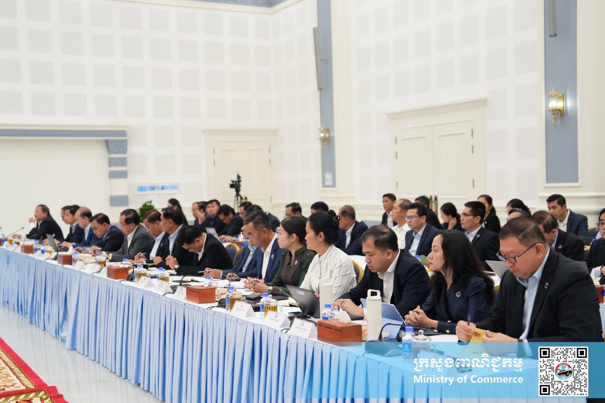 ភ្នំពេញ៖ លោកស្រី ចម និម្មល រដ្ឋមន្ត្រីក្រសួងពាណិជ្ជកម្ម បានអញ្ជើញជាអធិបតីដឹកនាំកិច្ចប្រជុំប្រចាំខែតុលា ឆ្នាំ២០២៥ របស់ក្រសួងពាណិជ្ជកម្ម ដែលមានវត្តមានអញ្ជើញចូលរួមពី លោក លោកស្រី រដ្ឋលេខាធិការ អនុរដ្ឋលេខាធិការ លោកអគ្គនាយក លោកស្រីអគ្គាធិការ លោក-លោកស្រីអគ្គនាយករង អគ្គាធិការរង ប្រធាននាយកដ្ឋាន-វិទ្យាស្ថានអនុប្រធាននាយកដ្ឋាន-វិទ្យាស្ថាន ប្រធាន និងអនុប្រធានមន្ទីរ ព្រមទាំងសាខា ក.ប.ប. រាជធានី-ខេត្តទាំងអស់ចំណុះឱ្យក្រសួងពាណិជ្ជកម្ម តំណាងពាណិជ្ជកម្មប្រចាំតំបន់រដ្ឋបាលសេដ្ឋកិច្ចពិសេស តំណាងពាណិជ្ជកម្មប្រចាំនៅបរទេស និងទីប្រឹក្សាទាំងអស់ចំណុះឱ្យក្រសួងពាណិជ្ជកម្មផងដែរ នាព្រឹកថ្ងៃព្រហស្បតិ៍ ទី៣០ ខែតុលា ឆ្នាំ២០២៥ នៅទីស្តីការក្រសួងពាណិជ្ជកម្ម។