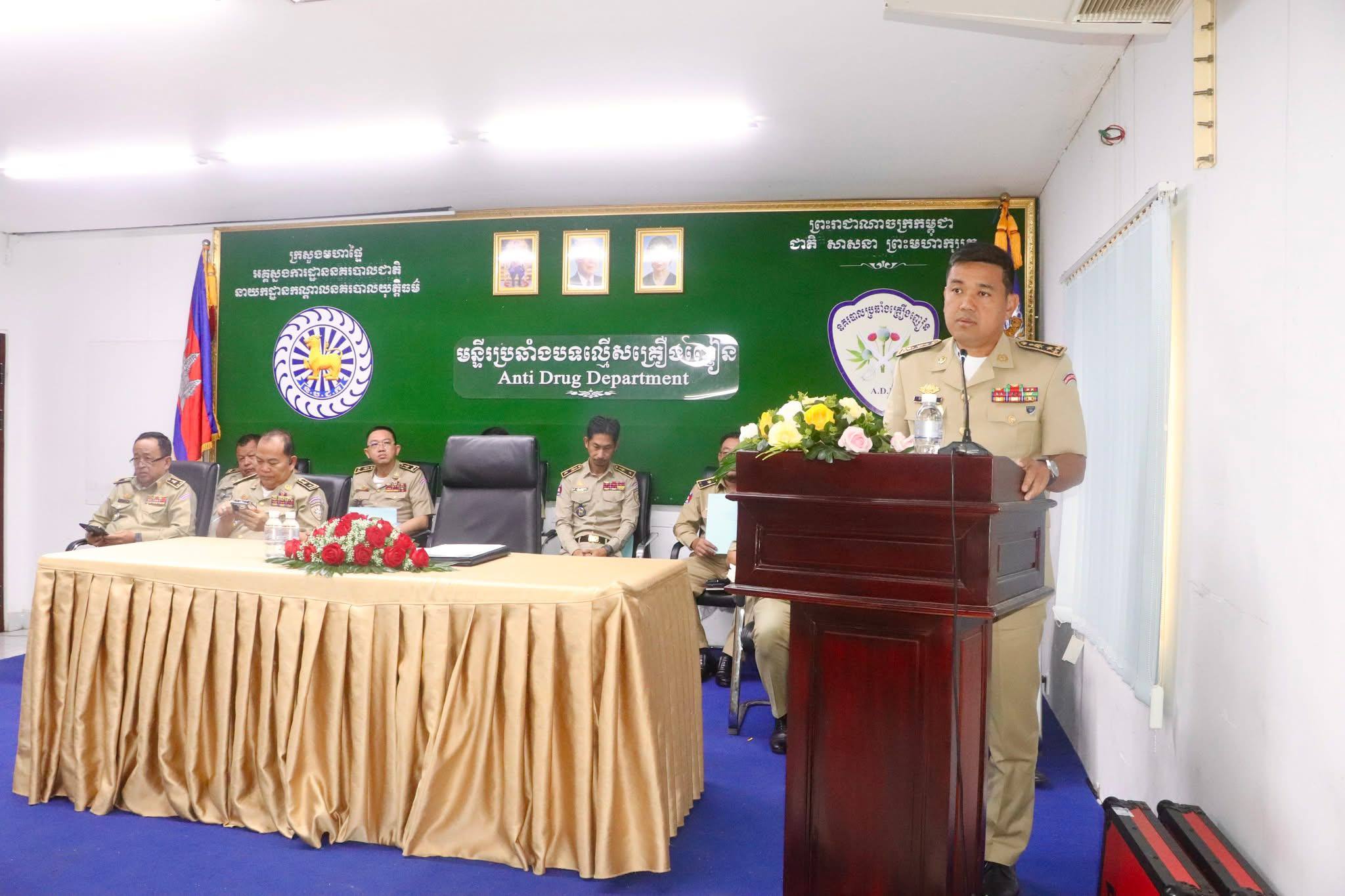 បន្ទាប់ពី លោកវរសេនីយ៍ឯក គង់ សីវឌ្ឍនា នាយការិយាល័យរដ្ឋបាល-សរុប (ក១) ឡើងអានសេចក្ដីណែនាំ ស្តីពីការផ្សព្វផ្សាយព័ត៌មានសន្តិសុខសណ្តាប់ធ្នាប់សង្គម សម្រាប់មន្ត្រីមានសមត្ថកិច្ចក្របខ័ណ្ឌក្រសួងមហាផ្ទៃ រួចមកឯកឧត្តម ឧត្តមសេនីយ៍ឯក ឃឹង សារ៉ាត់ នាយកមន្ទីរប្រឆាំងបទល្មើសគ្រឿងញៀន បានធ្វើការណែនាំឲ្យលោក-លោកស្រីឧត្តមសេនីយ៍ វរសេនីយ៍ នាយករងមន្ទីរ នាយការិយាល័យ និងមន្រ្តីជំនាញទាំងអស់ ត្រូវបង្កើនការអប់រំណែនាំ រំលឹកដាស់តឿនដល់មន្រ្តីអនុវត្តច្បាប់ ឲ្យគោរពនូវក្រមសីលធម៌ និងមនសិកាវិជ្ជាជីវៈ គោរពច្បាប់ បទបញ្ញត្តិ និងគោលការណ៍នានា របស់រាជរដ្ឋាភិបាល និងក្រសួងមហាផ្ទៃ។