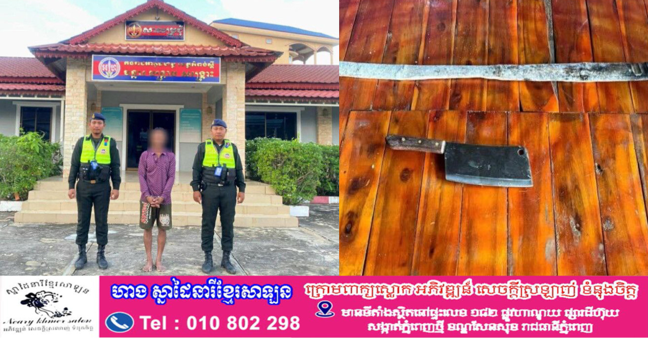 ខេត្តកំពង់ស្ពឺ ៖ បុរសជាប្អូនត្រូវបានកម្លាំងកងរាជ អាវុធហត្ថក្រុងច្បារមន ឃាត់ខ្លួនតាមបណ្តឹងរបស់បង ប្រុសបង្កើត បន្ទាប់ពីប្អូនប្រុសបានទាញកាំបិតប៉័ងតោនិងដំបងដេញកាប់បងផ្អើលពេញភូមិ ដោយមិនដឹងពីមូលហេតុច្បាស់លាស់ ។