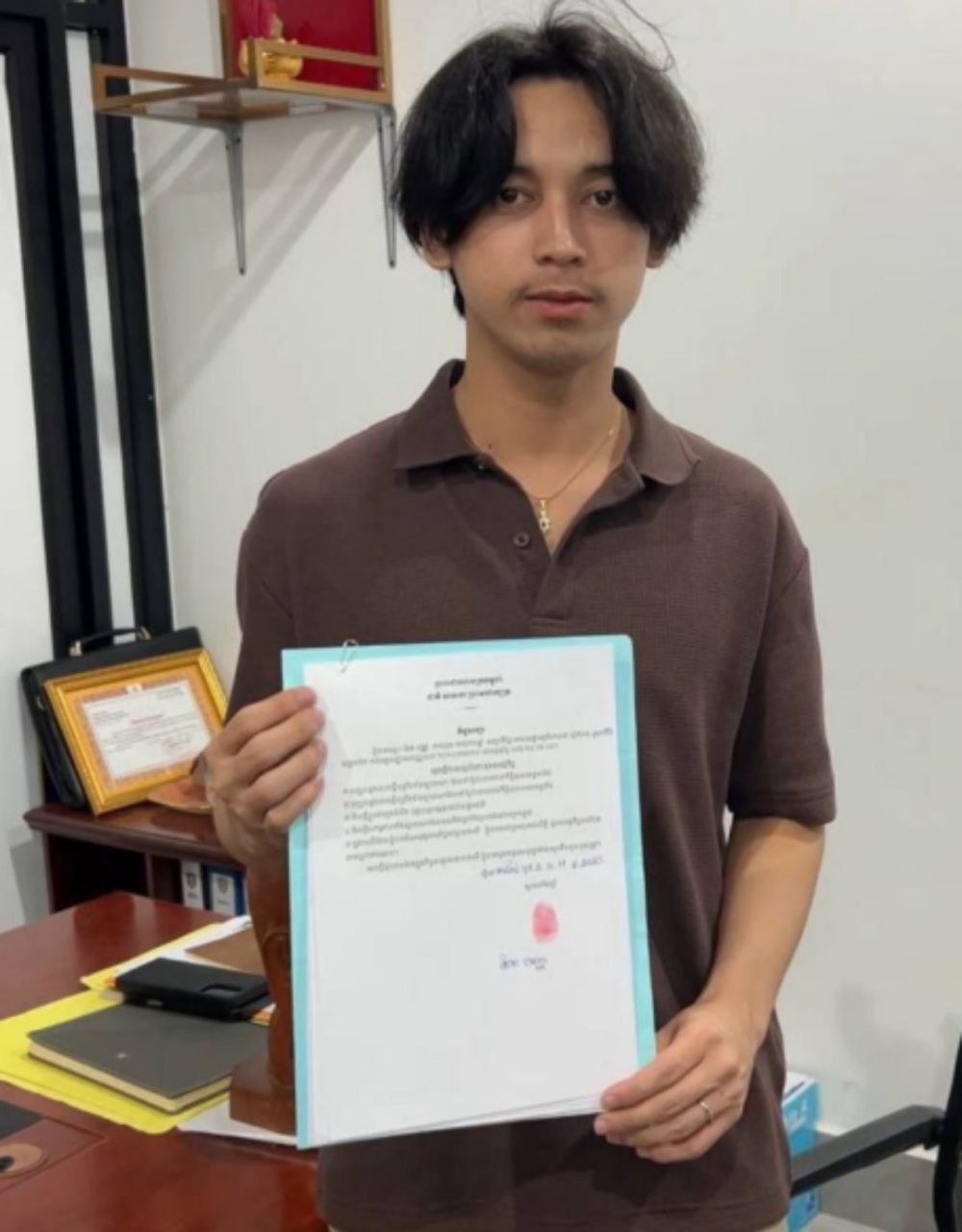 នៅចំពោះមុខសមត្ថកិច្ច អ្នកផលិតមាតិកាក្នុងកិច្ចសន្យា បានសរសេរថា «ខ្ញុំបាទឈ្មោះ តែត បញ្ញា ភេទប្រុស អាយុ២០ឆ្នាំ សញ្ជាតិខ្មែរ អាសយដ្ឋានភូមិហាន់ទា ឃុំកំពែង ស្រុកគិរីវ ខេត្តតាកែវ កាន់អត្តសញ្ញាណបណ្ណលេខ ១០១៤៤៧៣២០ លេខទូរស័ព្ទ ០៨៦ ២៤ ៨៦ ០០» សូមធ្វើការសន្យាចំពោះមុខសមត្ថកិច្ចដូចតទៅ ៖