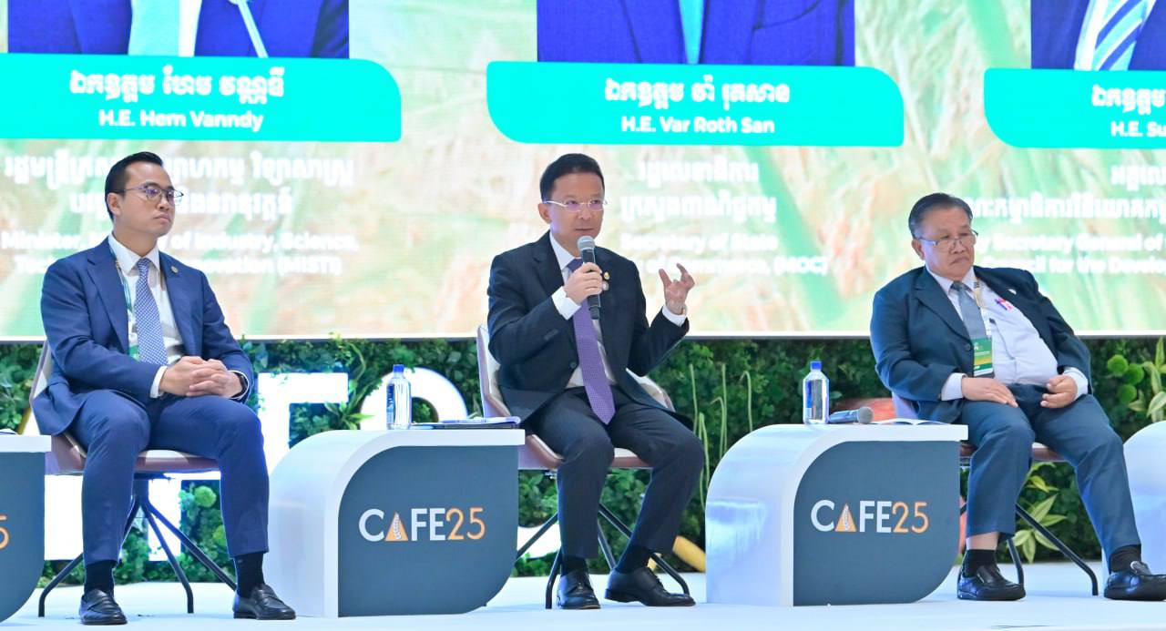 ជាក់ស្ដែងនៅក្នុងកិច្ចពិភាក្សាកម្រិតខ្ពស់ នៃវេទិកា និងពិព័រណ៍កសិកម្មកម្ពុជា២០២៥ ត្រូវបានរៀបចំឡើងពីថ្ងៃទី១៣-១៦ ខែវិច្ឆិកា នៅមជ្ឈមណ្ឌលសន្និបាត និងពិព័រណ៍កោះពេជ្រ ក្រោមប្រធានបទ “ការផ្គត់ផ្គង់ទីផ្សារដើម្បីឆ្លើយតបនឹងកំណើនតម្រូវការក្នុងស្រុក និងសម្រាប់ការនាំចេញ៖ កាលានុវត្តភាពសម្រាប់វិស័យកសិអាហារនៅកម្ពុជា ” រដ្ឋមន្ត្រីក្រសួងឧស្សាហកម្ម វិទ្យាសាស្ត្រ បច្ចេកវិទ្យា និងនវានុវត្តន៍ បានលើកឡើងថា វិស័យកសិកម្មនៅតែជាវិស័យគន្លឹះនៃសេដ្ឋកិច្ចកម្ពុជា។