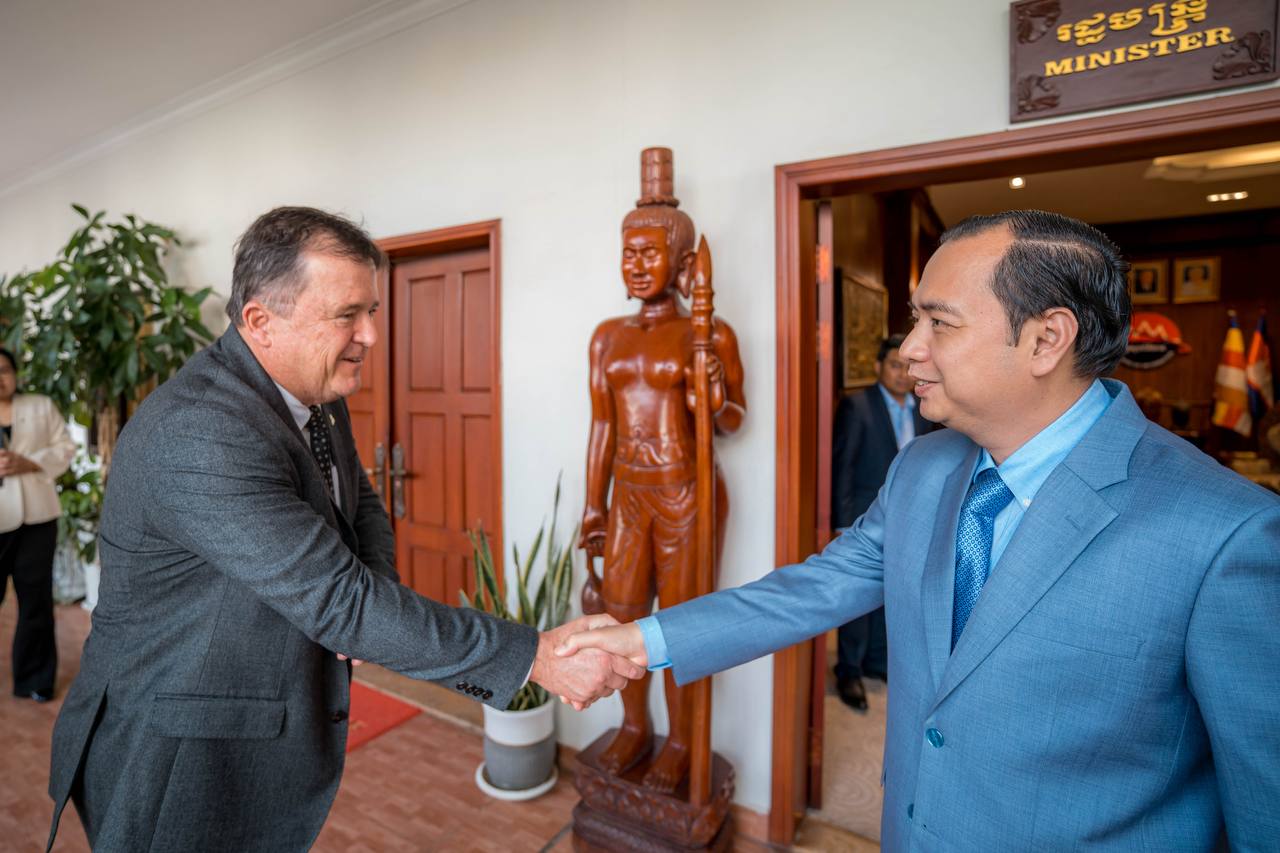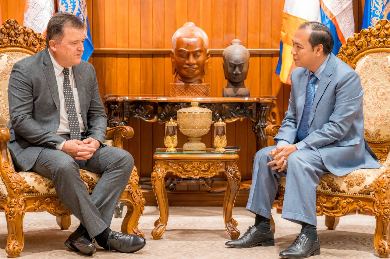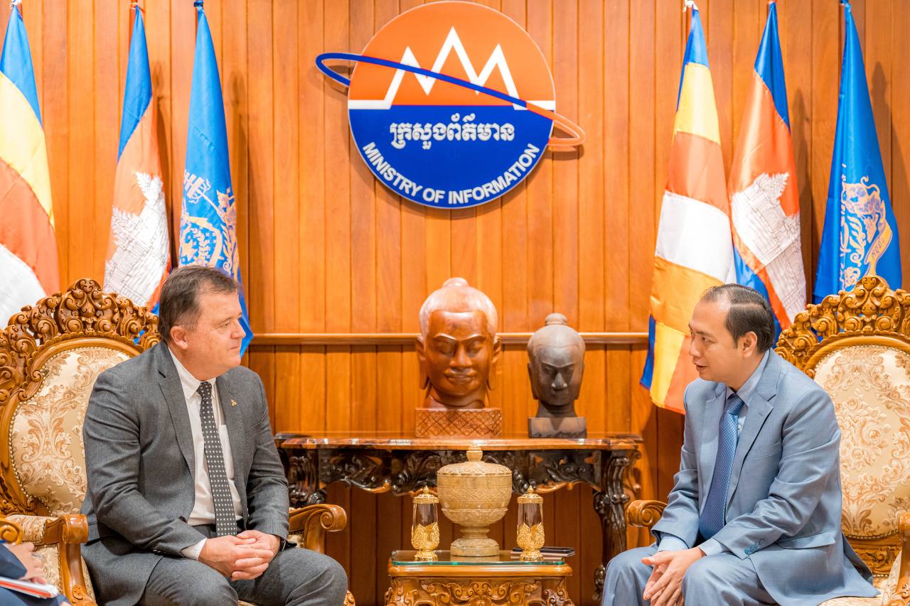 ភ្នំពេញ ៖ លោក នេត្រ ភក្ត្រា រដ្ឋមន្ត្រីក្រសួងព័ត៌មាន នៅរសៀលថ្ងៃទី២៤ ខែវិច្ឆិកា ឆ្នាំ២០២៥នេះ បានអនុញ្ញាតឱ្យលោក Mr. Michiel Oerlemans នាយកប្រតិបត្តិថ្មីនៃក្រុមហ៊ុន Cambrew (Carlsberg Cambodia) និងសហការី ចូលជួបសម្តែងការគួរ ដើម្បីពិភាក្សាអំពីបរិយាកាសនៃការធ្វើអាជីវកម្ម និងការផ្សព្វផ្សាយពាណីជ្ជកម្មផលិតផលភេសជ្ជៈ និងស្រាបៀរនៅក្នុងទីផ្សារព្រះរាជាណាចក្រកម្ពុជា។