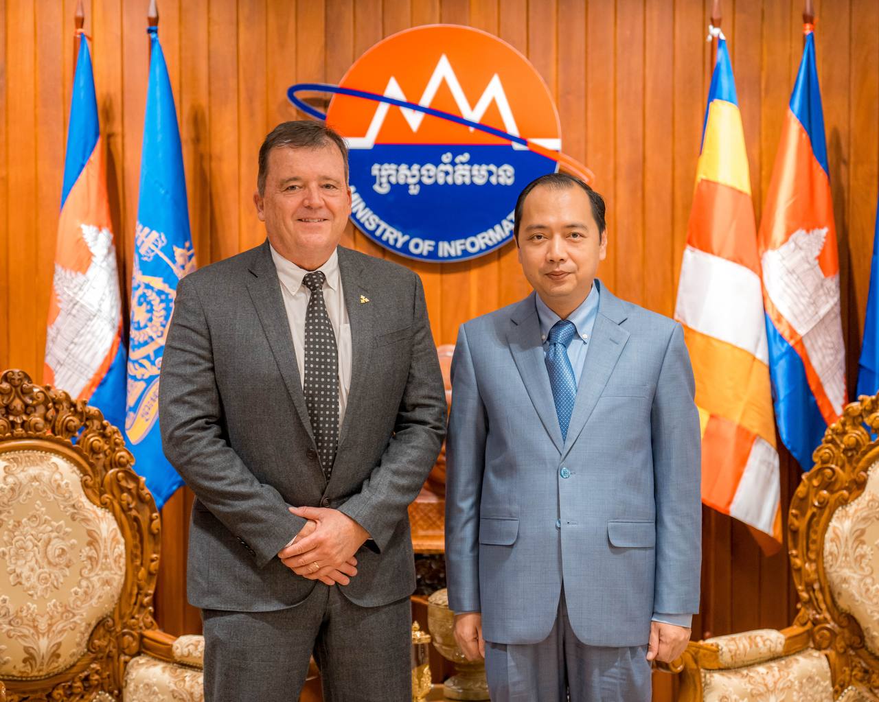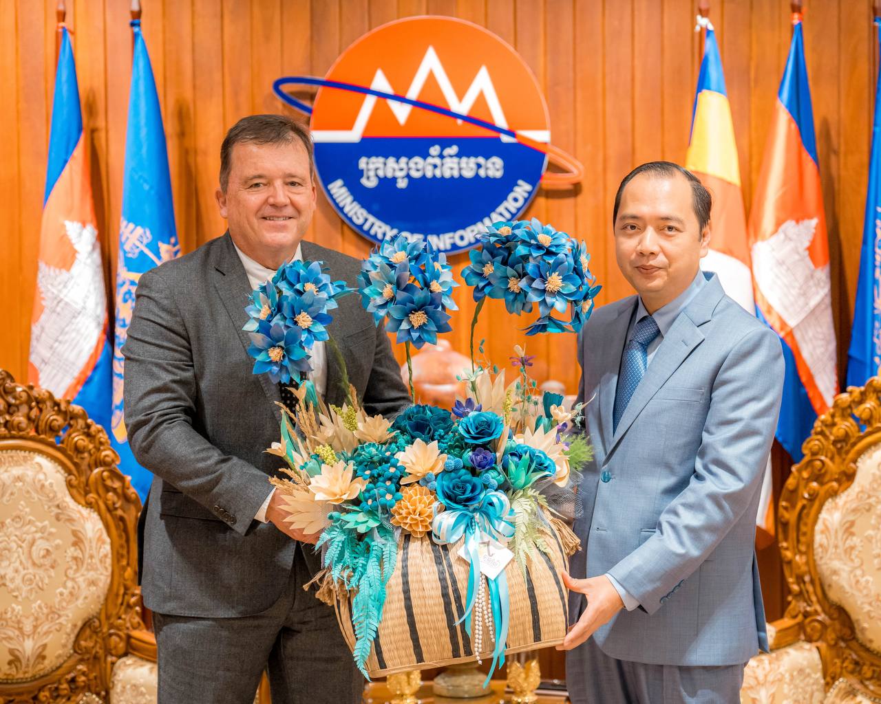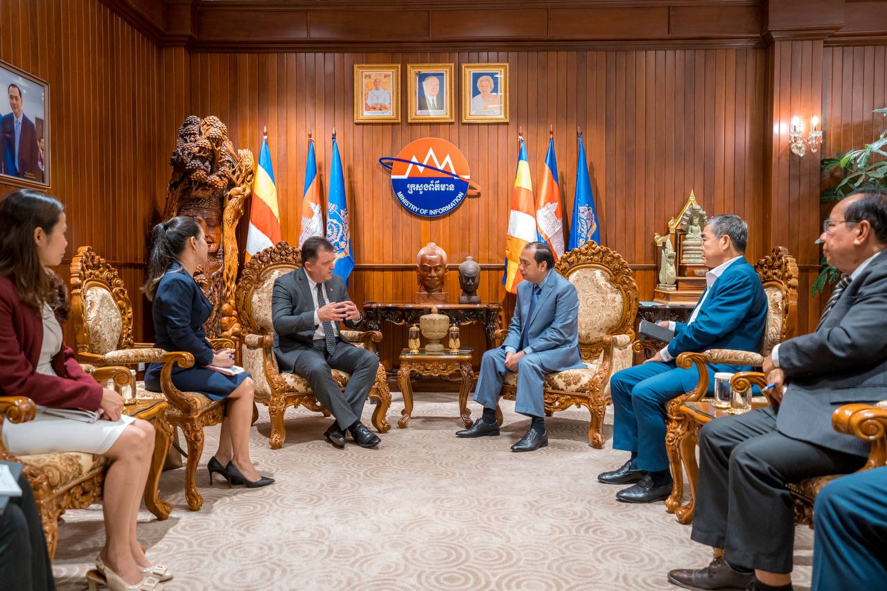 ភ្នំពេញ ៖ លោក នេត្រ ភក្ត្រា រដ្ឋមន្ត្រីក្រសួងព័ត៌មាន នៅរសៀលថ្ងៃទី២៤ ខែវិច្ឆិកា ឆ្នាំ២០២៥នេះ បានអនុញ្ញាតឱ្យលោក Mr. Michiel Oerlemans នាយកប្រតិបត្តិថ្មីនៃក្រុមហ៊ុន Cambrew (Carlsberg Cambodia) និងសហការី ចូលជួបសម្តែងការគួរ ដើម្បីពិភាក្សាអំពីបរិយាកាសនៃការធ្វើអាជីវកម្ម និងការផ្សព្វផ្សាយពាណីជ្ជកម្មផលិតផលភេសជ្ជៈ និងស្រាបៀរនៅក្នុងទីផ្សារព្រះរាជាណាចក្រកម្ពុជា។
