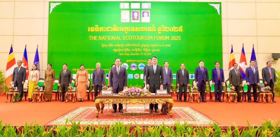 ខេត្តសៀមរាប ៖ លោក ហួត ហាក់ រដ្ឋមន្ត្រីក្រសួងទេសចរណ៍ និងជាប្រធានគណៈកម្មាធិការជាតិគ្រប់គ្រង និងអភិវឌ្ឍសហគមន៍ទេសចរណ៍ និងអេកូទេសចរណ៍ រួមជាមួយលោក ឌិត ទីណា រដ្ឋមន្ត្រីក្រសួងកសិកម្ម រុក្ខាប្រមាញ់ និងនេសាទ និងជាអនុប្រធានគណៈកម្មាធិការជាតិគ្រប់គ្រង និងអភិវឌ្ឍសហគមន៍ទេសចរណ៍និងអេកូទេសចរណ៍ បានអញ្ជើញជាអធិបតីក្នុងពិធីបើកវេទិកាជាតិអេកូទេសចរណ៍ ឆ្នាំ២០២៥ ដែលនេះគឺជាវេទិកានៃការជួបជុំប្រចាំឆ្នាំដ៏សំខាន់ដែលមានគ្រប់សមាសភាពពាក់ព័ន្ធ ទាំងថ្នាក់ជាតិ និងថ្នាក់ក្រោមជាតិវិស័យ ឯកជន រួមជាមួយស្ថាប័នដៃគូអភិវឌ្ឍ អង្គការជាតិ និងអង្គការអន្តរជាតិ បងប្អូនប្រជាសហគមន៍ និងដៃគូពាក់ព័ន្ធនានា ដើម្បីរួមគ្នាពិភាក្សាផ្លាស់ប្តូរមតិយោបល់ និងបទពិសោធលើការងារអេកូទេសចរណ៍ និងទេសចរណ៍សហគមន៍ នៅក្នុងក្របខណ្ឌទូទាំងប្រទេស។