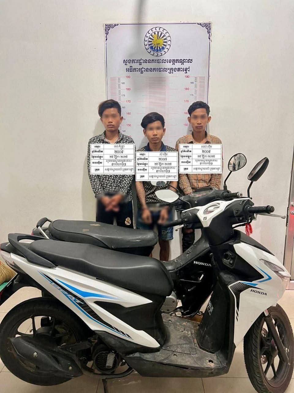 ខេត្តកណ្តាល ÷សមត្ថកិច្ចឃាត់ខ្លួនក្រុមជនសង្ស័យ ករណីលួចមានស្ថានទម្ងន់ទោស (កាប់ប្លន់យកម៉ូតូ) ពីអ្នកធ្វើដំណើរតាមផ្លូវ បានចំនួន០៣នាក់ហើយ ក្នុងបក្ខពួកចំនួន០៤នាក់ ក្រោយធ្វើការស្រាវជ្រាវអស់រយ:ពេល១៣ថ្ងៃ ដោយក្រុមជនសង្ស័យបានធ្វើសកម្មកាប់ប្លន់យកម៉ូតូចំនួន០៣លើក។