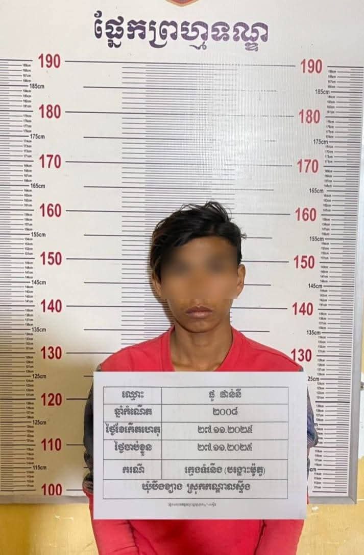 ខេត្តកណ្ដាល÷មន្ត្រីនគរបាលនៅអធិការដ្ឋាននគរបាលស្រុកកណ្ដាលស្ទឹងនៅថ្ងៃ ២៨ ខែវិច្ឆិកា ឆ្នាំ២០២៥នេះឲ្យដឹងថា កម្លាំងនគរបាលប៉ុស្តិ៍រដ្ឋបាលបឹងខ្យាងនិងកម្លាំងប្រជាការពារបានឃាត់ ខ្លួនក្រុមក្មេងទំនើង៤នាក់ ដែលកំពុងធ្វើសកម្មភាពបង្ហោះម៉ូតូតាមផ្លូវសាធារណៈ។ ហេតុការណ៍នេះកើត ឡើងនៅវេលាម៉ោង ២០និង១០ នាទី ថ្ងៃទី២៧ វិច្ឆិកា ២០២៥ នៅលើផ្លូវបេតុងក្រវ៉ាត់ព្រលានយន្តហោះអន្តរជាតិតេជោ ស្ថិតក្នុងភូមិកំពង់តាឡុង ឃុំបឹងខ្យាង ស្រុកកណ្ដាលស្ទឹង ខេត្តកណ្ដាល។