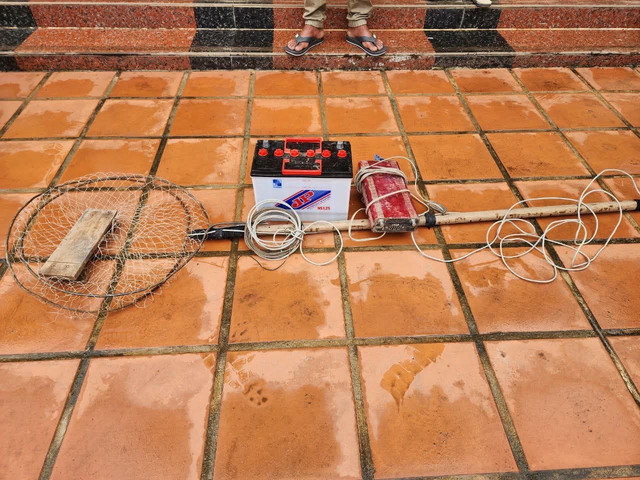 វត្ថុតាងនៃបទល្មើសដែលដកហូតបានរួមមាន៖ ទូកស្មាច់មួយគ្រឿង, ម៉ាស៊ីន ម៉ាកហ៊ីណូតា កម្លាំង ៧សេះ មួយគ្រឿង, ក្បាលឆក់ (អ័ងវ៉ាទ័រ) មួយគ្រឿង, ខ្សែកាប ៥ម៉ែត្រ, ខ្សែភ្លើង ៥ម៉ែត្រ ន៨ងថ្នងដងត្រីមួយ។