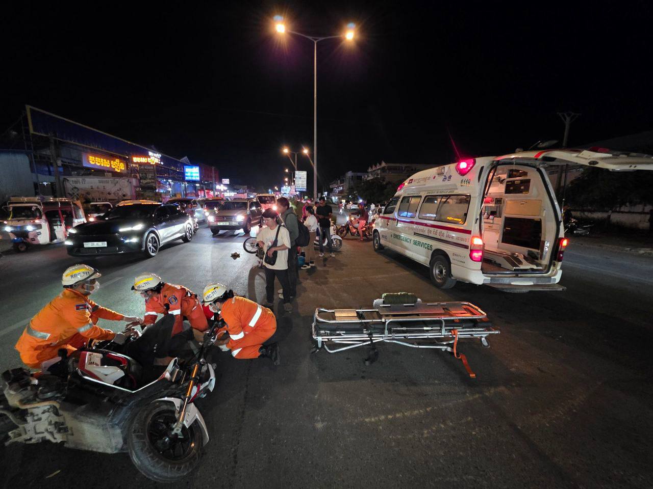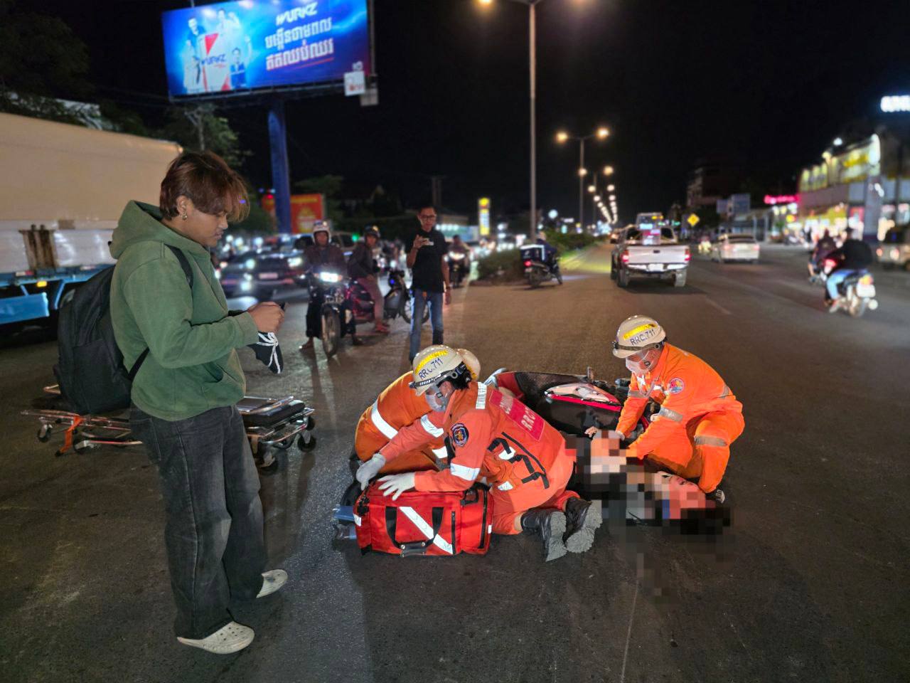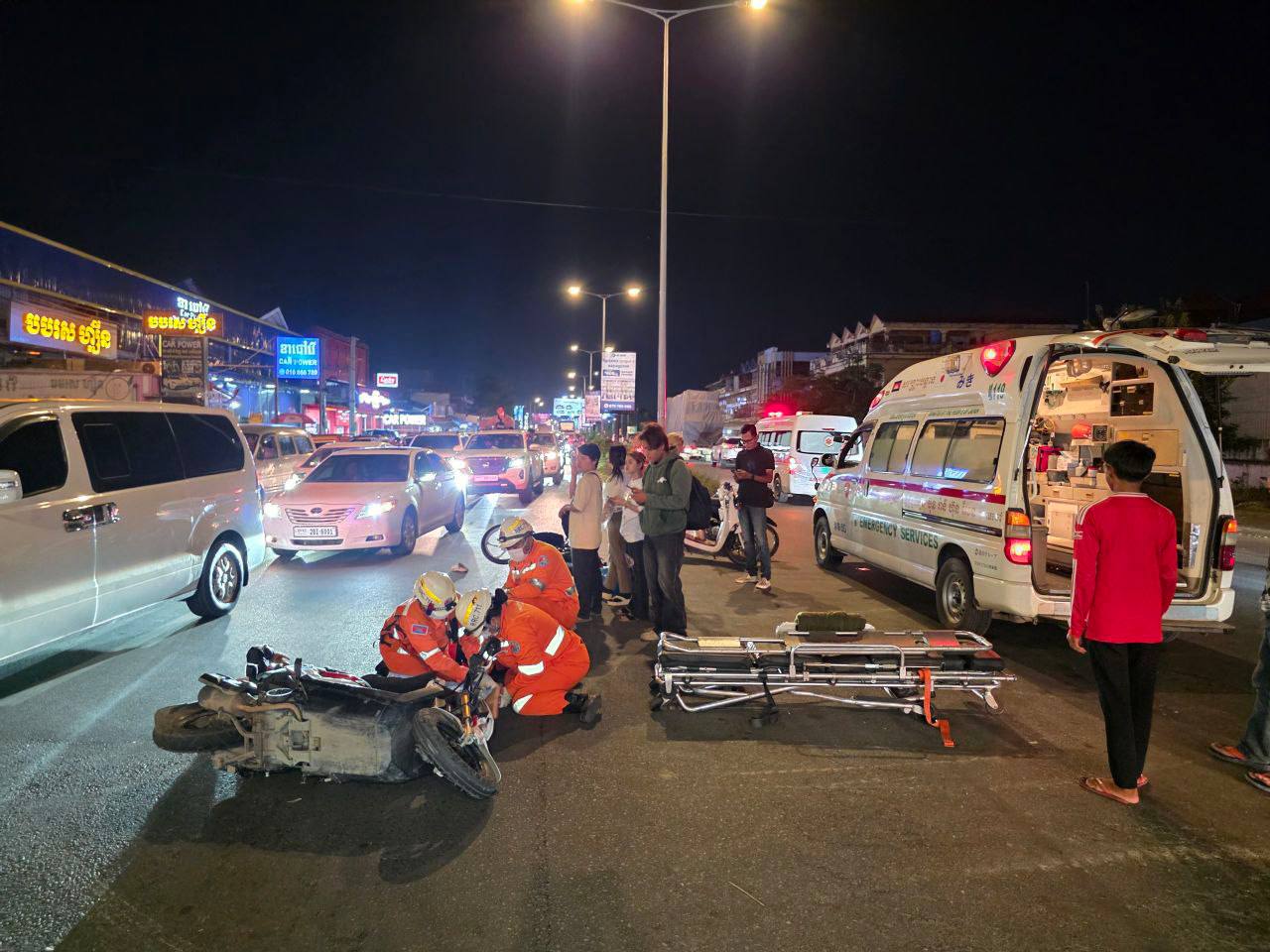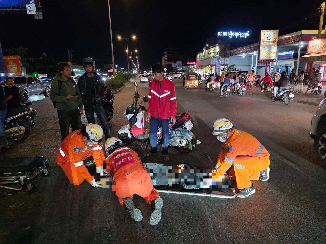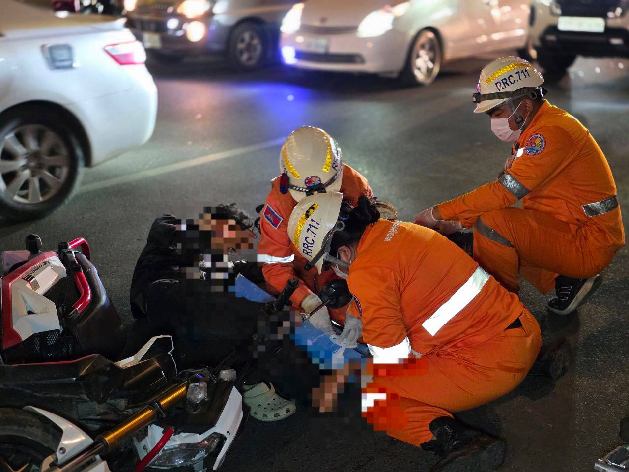 ភ្នំពេញ៖ យុវជនម្នាក់ជិះម៉ូតូឆ្លងផ្លូវមិនប្រយ័ត្នត្រូវម៉ូតូមួយគ្រឿងទៀតជិះបុកពេញទំហឹងបណ្តាលឲ្យរងរបួសបាក់ជេីងម្ខាងត្រូវបានកងសង្គ្រោះបន្ទាន់៧១១កងពលតូចលេខ៧០ដឹកទៅមន្ទីរពេទ្យភ្លាមៗ។