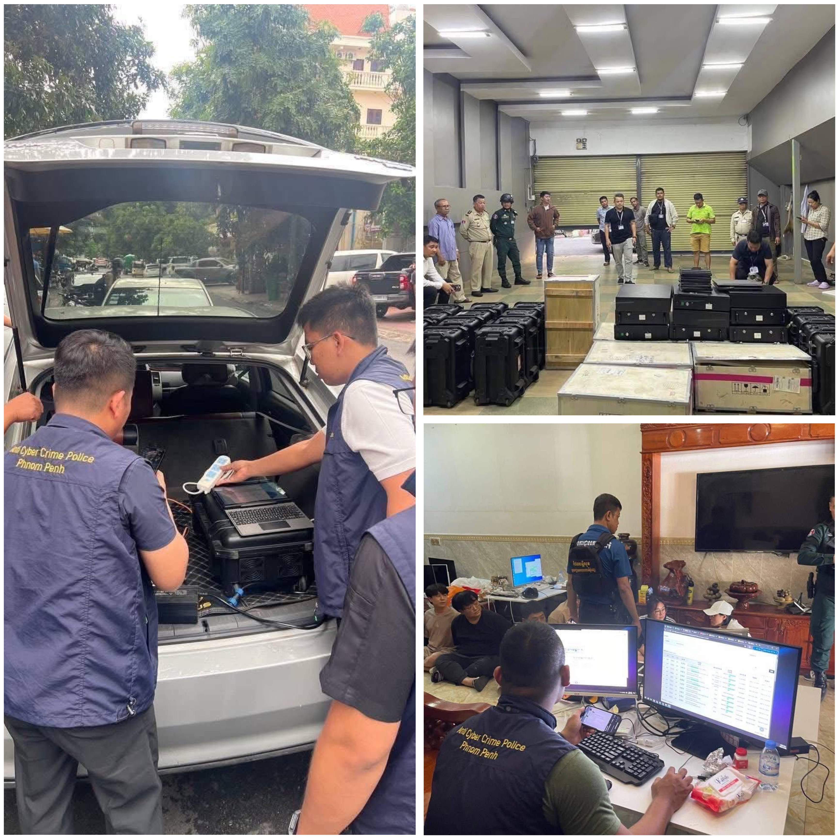 ជម្រាបដោយសង្ខេប នាថ្ងៃទី៦ ខែធ្នូ ឆ្នាំ២០២៥ កម្លាំងចម្រុះនៃផែនការងារសន្តិសុខ ផែនការងារអន្តោប្រវេសន៍ និងអធិការដ្ឋាននគរបាលឫស្សីកែវ បងដោយមានការសម្របសម្រួលនីតិវិធីពីព្រះរាជអាជ្ញារង នៃអយ្យការអមសាលាដំបូងរាជធានីភ្នំពេញ បានចុះបង្ក្រាបទីតាំងសង្ស័យលួចលាក់បង្កប់បទល្មើសឆបោកតាមប្រព័ន្ធអនឡាញ (Online Scams) ក្នុងបុរីពិភពថ្មី ផ្លូវជាតិលេខ៥ ខណ្ឌឫស្សីកែវ។ សមត្ថកិច្ចបានឃាត់ខ្លួនជនជាតិកូរ៉េ ៧នាក់ (ស្រី២នាក់) ជនជាតិខ្មែរ ២នាក់ (អ្នកបើកបររថយន្ត) និងដកហូតវត្ថុតាង រួមមាន កុំព្យូទ័រយួរដៃ Laptop ចំនួន៦គ្រឿងកុំព្យូទ័រ All in one ចំនួន៤គ្រឿង ម៉ូនីទ័រចំនួន៦គ្រឿង និងiPad ចំនួន៨គ្រឿង។ បច្ចុប្បន្នសមត្ថកិច្ចកំពុងត្រួតពិនិត្យ និងកោសល្យវិច័យបឋមស្វែងរកបទល្មើសក្នុងឧបករណ៍ទាំងនោះ។