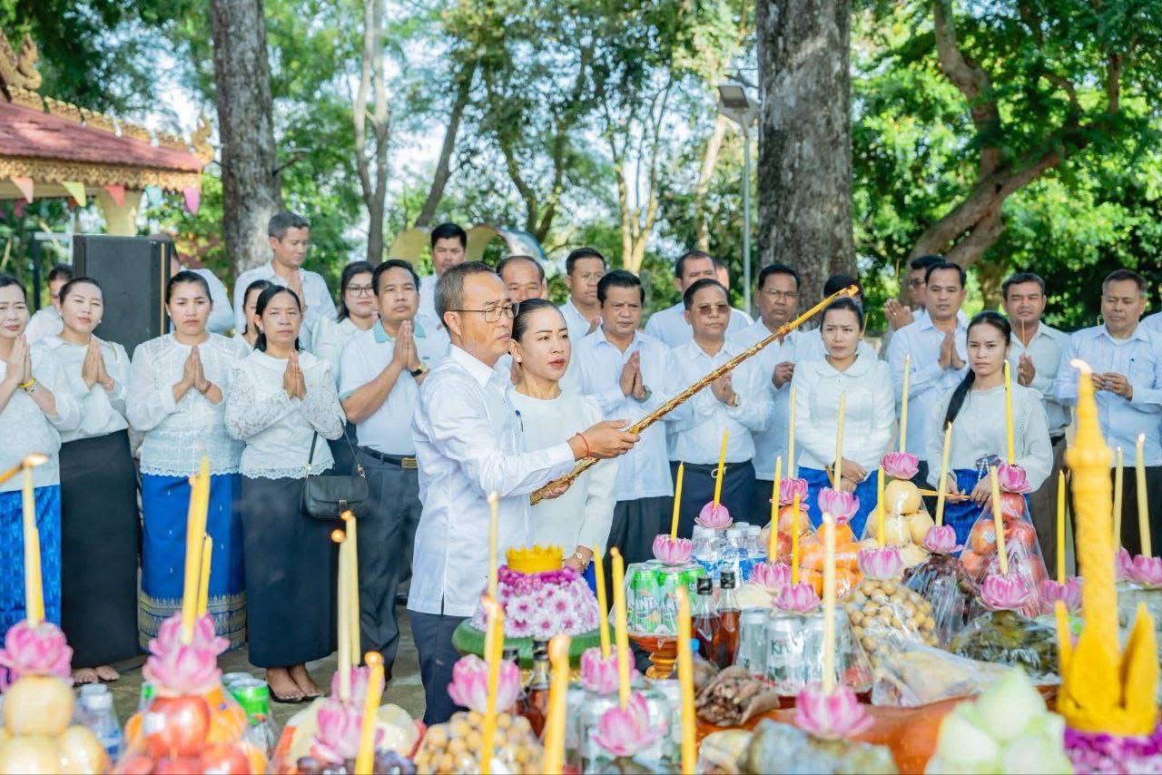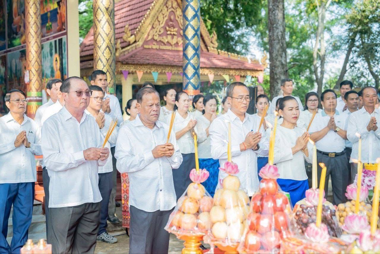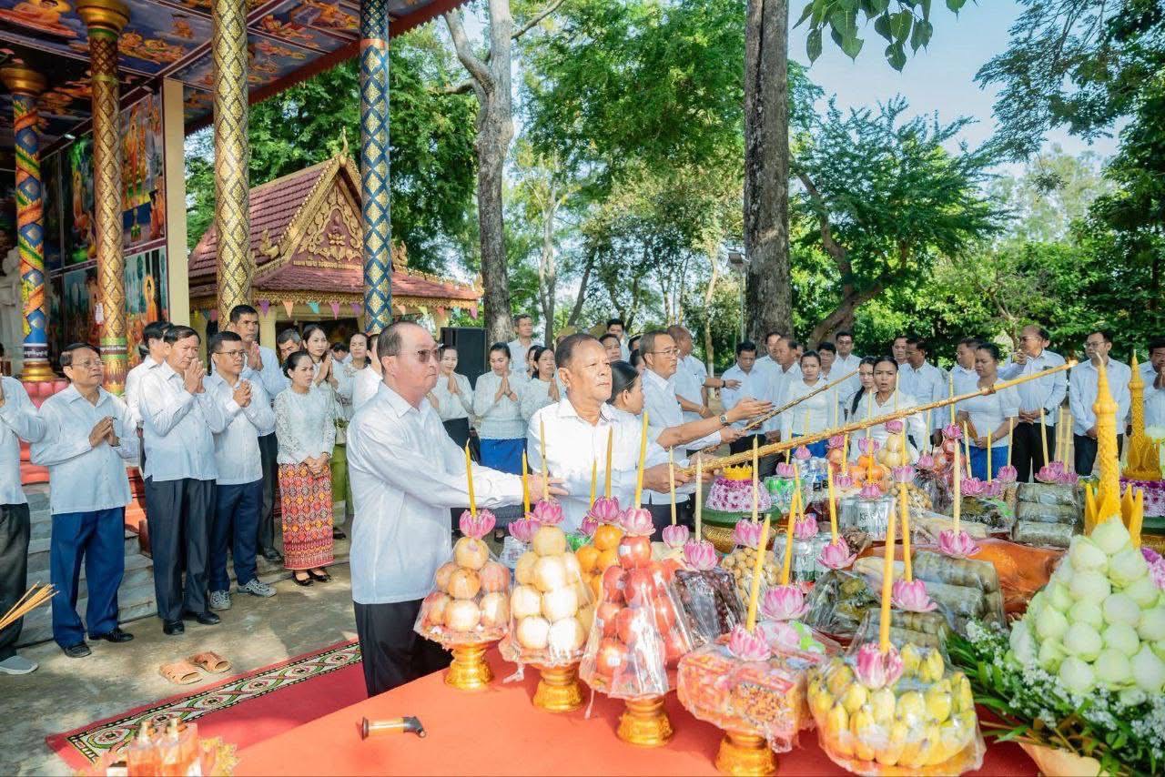 ខេត្តព្រៃវែង ៖ នៅថ្ងៃទី១២ ខែធ្នូ ឆ្នាំ២០២៥ លោក សួន សុម៉ាលីន អភិបាល នៃគណៈអភិបាលខេត្ត និងលោកស្រី រួមជាមួយលោក អ៊ុំ ប៊ុនឡេង សមាជិកក្រុមប្រឹក្សាខេត្ត តំណាងលោក ស្បោង សារ៉ាត ប្រធានក្រុមប្រឹក្សាខេត្ត បានអញ្ជើញជាអធិបតីក្នុងពិធីបួងសួងសុំសេចក្តីសុខដល់វីរកងទ័ពជួរមុខកម្ពុជា ដែលកំពុងឈរជើងនៅសមរភូមិមុខការពារ ទឹកដី និងមាតុភូមិ ដែលពិធីនេះប្រារព្ធធ្វើនៅទួលបារាយណ៍អណ្តែត(ទួលអស់លោក) ស្ថិតនៅសង្កាត់បារាយណ៍ ក្រុងព្រៃវែង ខេត្តព្រៃវែង ដោយមានការអញ្ជើញចូលរួមពី លោក លោកស្រី សមាជិកក្រុមប្រឹក្សាខេត្ត លោក លោកស្រី អភិបាលរងខេត្ត នាយក នាយករងរដ្ឋបាលសាលាខេត្ត មេបញ្ជាការកងកម្លាំងទាំងបី ប្រធាន អង្គភាពពន្ធនាគារខេត្ត លោក លោកស្រី ប្រធានមន្ទីរ អង្គភាពជុំវិញ ខេត្ត អភិបាល នៃគណៈអភិបាលក្រុង ស្រុកទាំង១៣ ប្រធានសភាព ពាណិជ្ជកម្មខេត្ត ប្រធានសាខាគយ និងរដ្ឋាករខេត្ត ប្រធានសាខា ការពារអ្នកប្រើប្រាស់កិច្ចការប្រកួតប្រជែង និងបង្ក្រាបការក្លែងបន្លំ ខេត្ត នាយិកាសាខាកាកបាទក្រហមកម្ពុជាខេត្ត នាយកទីចាត់ការ ប្រធានអង្គភាព ប្រធានផ្នែកចំណុះសាលាខេត្ត និងក្រុមការងារ សាលាខេត្ត សរុបចំនួន ១០៥រូប។