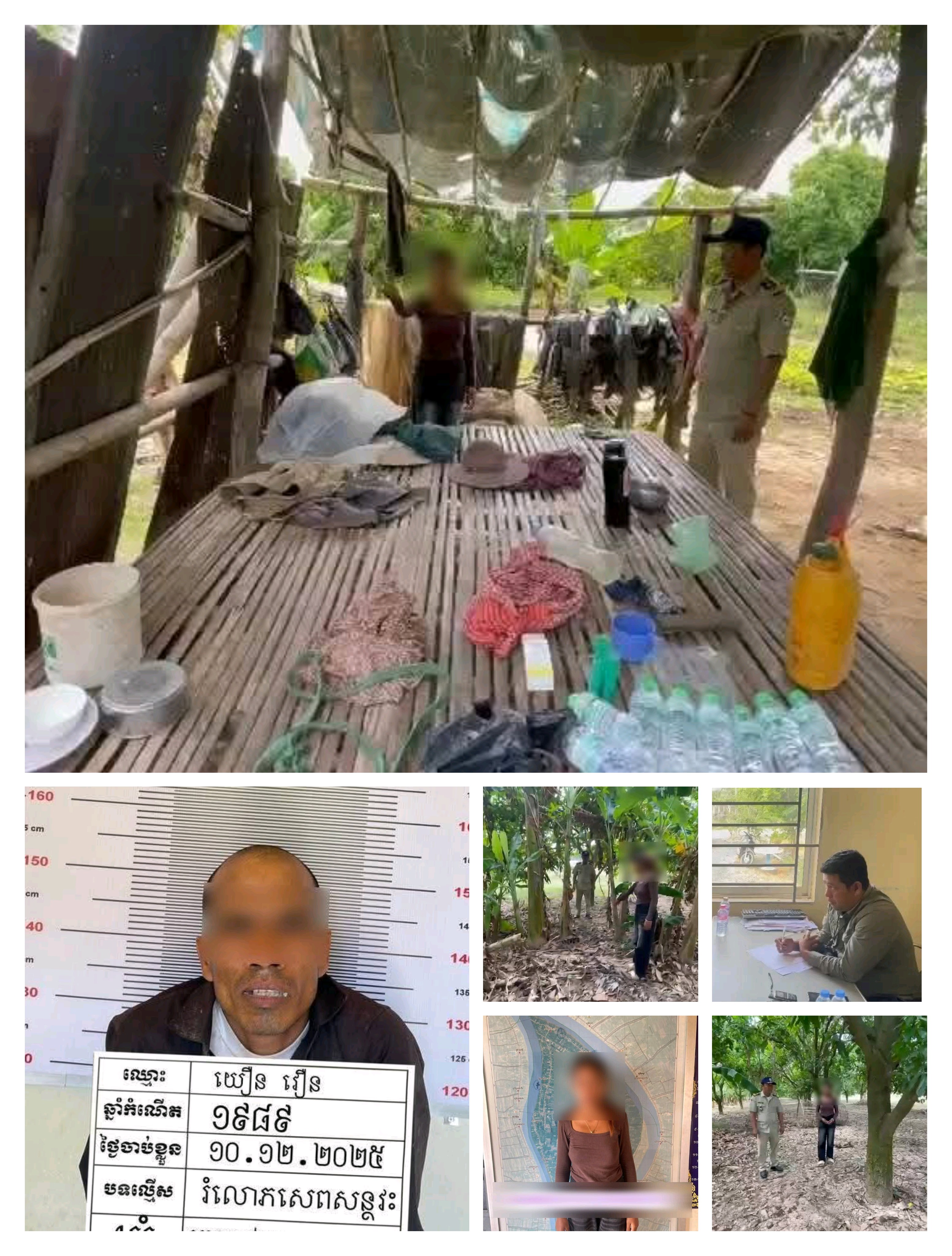 លោកវរសេនីយ៍ឯក រស់ ចន្ថា អធិការនគរបាលស្រុកស្អាង បានឲ្យដឹងថា ជនសង្ស័យដែលត្រូវបានឃាត់ខ្លួនឈ្មោះ យឿន វឿន ភេទ ប្រុស អាយុ ៣៦ឆ្នាំ មុខរបរមិនពិតប្រាកដ មានទីលំនៅភូមិឃុំកើតហេតុ (ពិនិត្យទឹក នោមមានសារធាតុញៀន និងធ្លាប់ជាប់ពន្ធនាគារខេត្តកណ្ដាល ១ឆ្នាំ ពីបទរក្សាទុកគ្រឿងញៀន)។ ចំណែកឯជនរងគ្រោះ ភេទ ស្រី អាយុ ១៨ឆ្នាំ មុខរបរកសិករ មានស្រុកកំណើតនៅស្រុកបាធាយ ខេត្តកំពង់ចាម បច្ចុប្បន្នស្នាក់នៅជាមួយប្តីក្នុងភូមិឃុំកើតហេតុ។