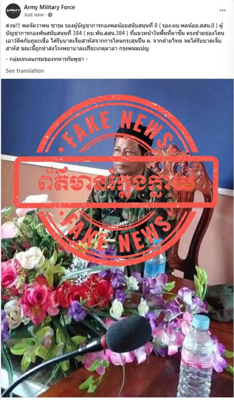 លោកអ្នកនាំពាក្យរូបនេះ បានគូសបញ្ជាក់ថា៖«គេបង្ហោះរូបភាពមួយចំនួន ដើម្បីបំបាក់ទឹកចិត្តបងប្អូនប្រជាពលរដ្ឋយើង កងទ័ពយើង គេបង្ហោះរូបភាពសម្លៀកបំពាក់របស់យោធាយើង មានរូបសញ្ញា ឡូហ្គោកងទ័ពយើង ផ្លាកឈ្មោះ គេយកមកតុបតែងបង្កើតឡើង ហើយបង្ហោះថា នេះគឺជាអ្វីដែលគេចាប់បានអ៊ីចឹងទៅ។ គេឱ្យប្រជាពលរដ្ឋយើងកងទ័ពយើងយល់ថា យើងចាញ់គេ។»។
