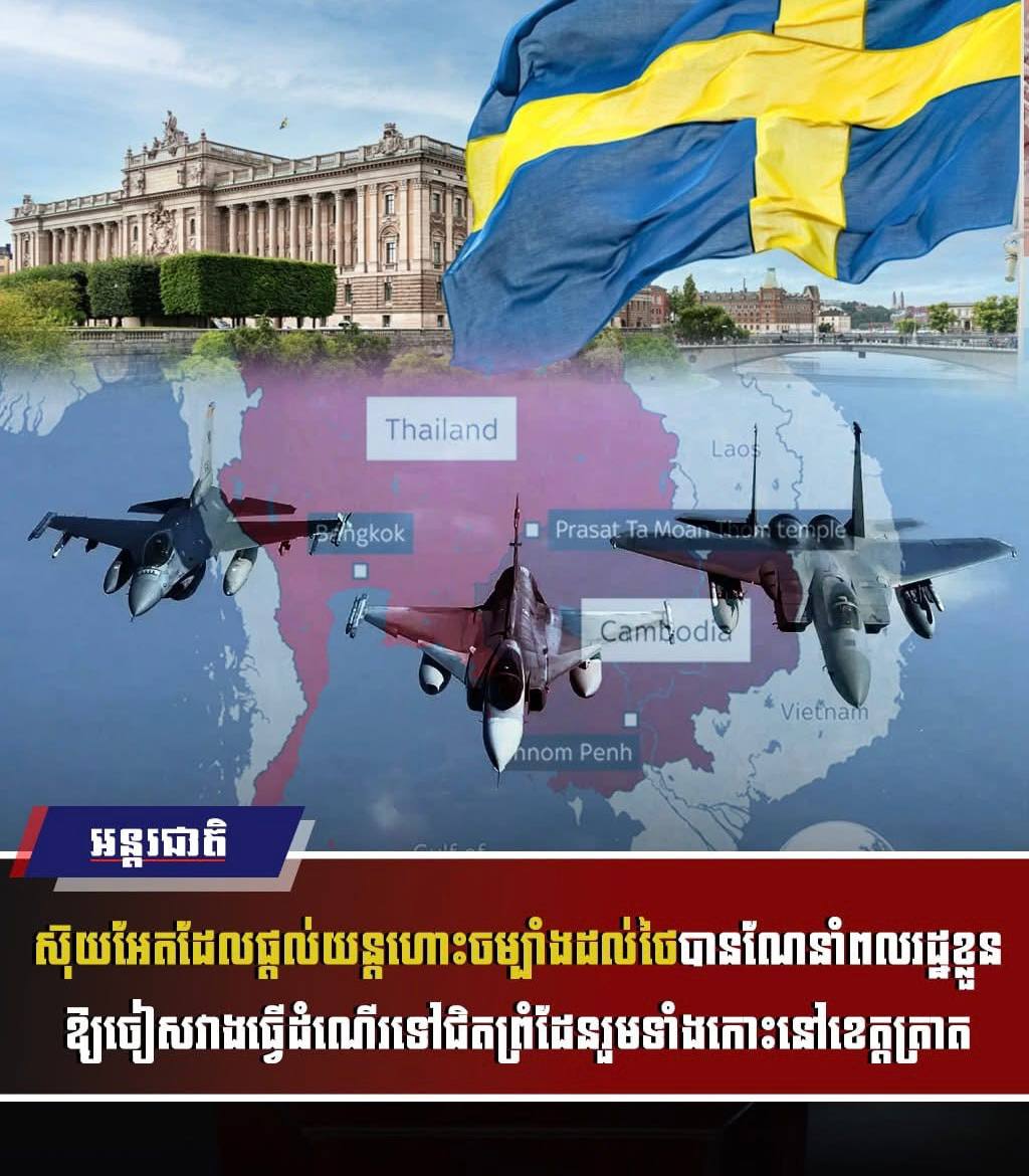 គួរឱ្យដឹងដែរថា ស៊ុយអែត គឺជាប្រទេសមួយដែលបានផ្គត់ផ្គង់យន្តហោះចម្បាំង Gripen ដល់ប្រទេសថៃ ខណៈប្រទេសមួយនេះកំពុងធ្វើសង្រ្គាមឈ្លានពានលើប្រទេសកម្ពុជា។ Saabដែលជាក្រុមហ៊ុនការពារជាតិស៊ុយអែត ត្រូវបានគេរាយការណ៍ថា បានគាំទ្រប្រទេសថៃក្នុងប្រតិបត្តិការយោធារបស់ខ្លួនប្រឆាំងនឹងប្រទេសកម្ពុជា ហើយគ្រោងនឹងផ្គត់ផ្គង់យន្តហោះចម្បាំង Gripen E/F ចុងក្រោយបំផុតដល់ប្រទេសថៃ។