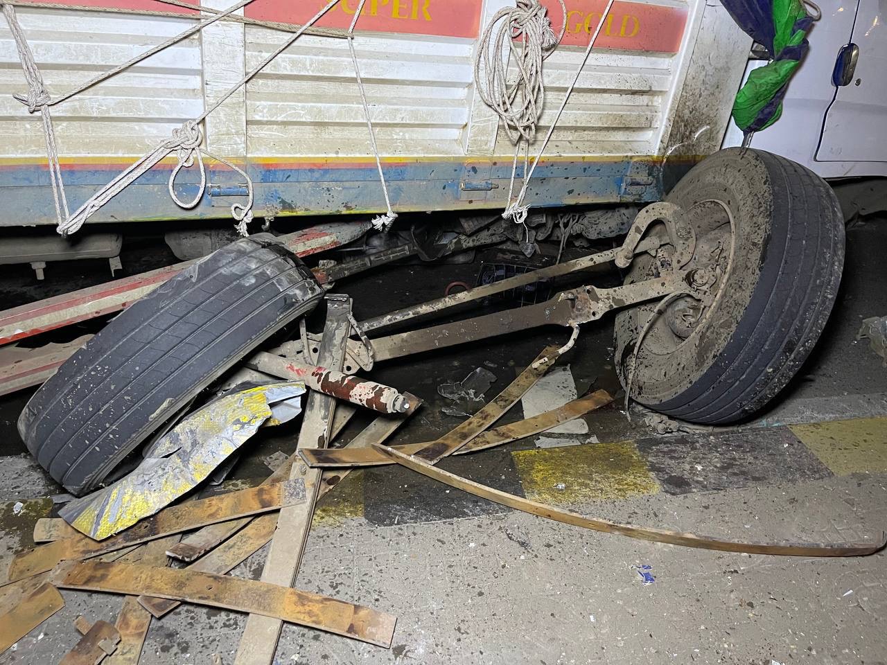 ភ្នំពេញ៖ បុរសម្នាក់បានបើករថយន្តកូរ៉េដឹកទំនិញមួយគ្រឿងក្នុងល្បឿនលឿនខ្វះការប្រុងប្រយ័ត្នក៏រ៉េចង្កូតទៅបុករបាំងថ្មគល់ស្ពានអាកាស្ទឹងមានជ័យយ៉ាងពេញទំហឹងបណ្ដាលឲ្យរថយន្តដាច់កង់ម្ខាងទៅមុខលែងរួចខូចខាតយ៉ាងដំណំ សំណាងល្អមិនបង្កឲ្យមានគ្រោះថ្នាក់ដល់មនុស្ស។