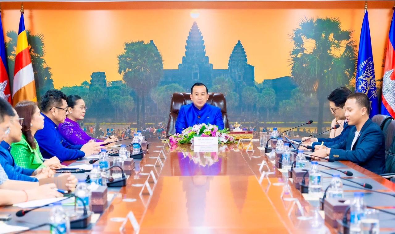On the afternoon of December 26, 2025; H.E. Mr. HUOT Hak, Minister of Tourism, grants Ms. Na Yunjung, representative of K’VE Entertainment, who led the popular K-POP boy band N-CHIVE and her esteemed colleagues from the Republic of Korea, a courtesy call, report on their work activities, and request high-level leadership recommendations on organizing a music tourism tour to share love and solidarity from the Korean people in Phnom Penh.