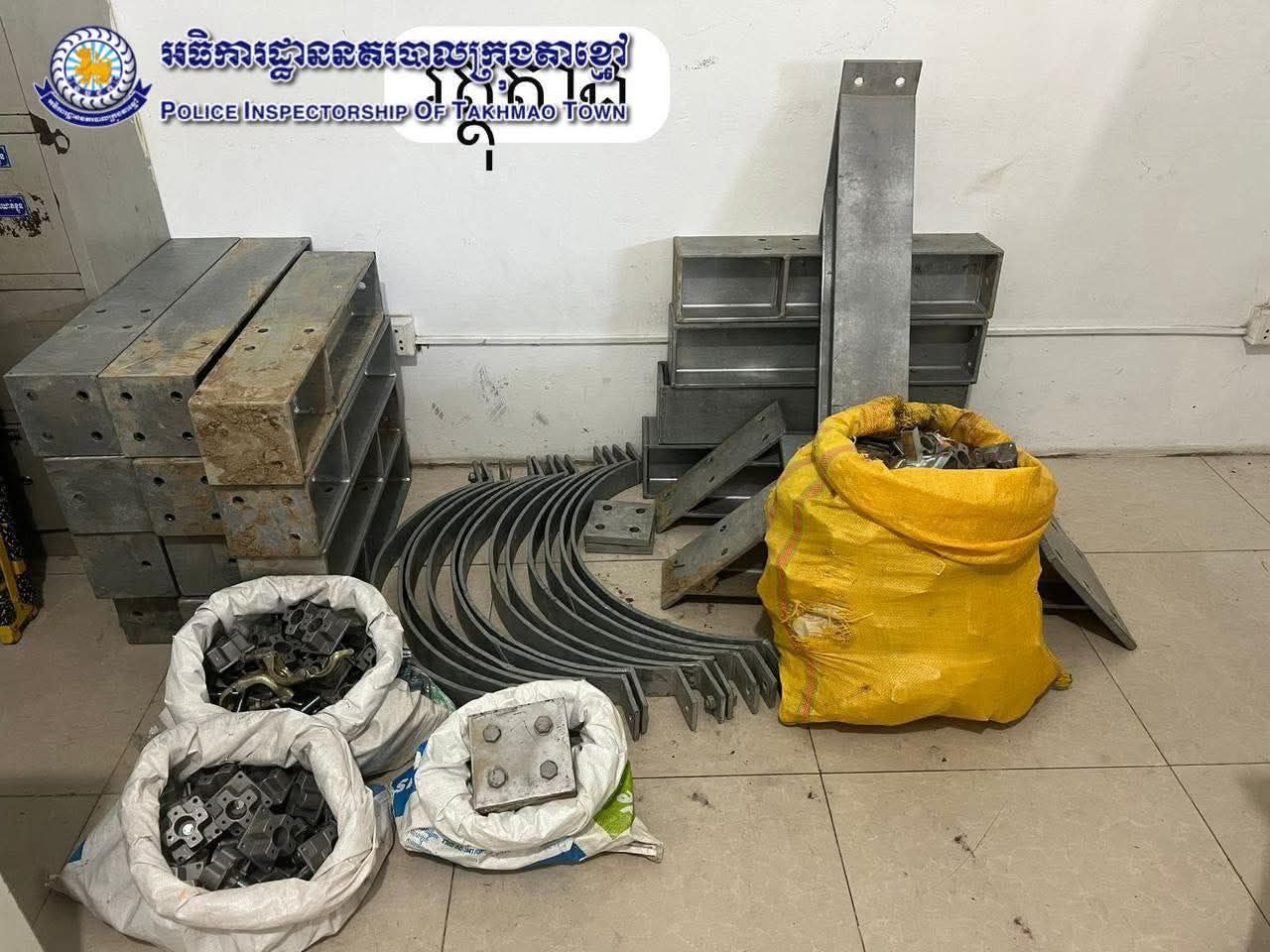សមត្ថកិច្ចឃាត់ខ្លួនជនសង្ស័យបាន២ នាក់ ទី១-ឈ្មោះឈឹន សុខខុន ភេទប្រុស អាយុ៤៤ ឆ្នាំ ជន ជាតិខ្មែរ ភូមិដំណាក់សង្កែ សង្កាត់ព្រែកកំពឹសខណ្ឌ ដង្កោ រាជធានីភ្នំពេញ មុខរបរមិនពិតប្រាកដ ជនសង្ស័យមានសារធាតុញៀនក្នុងទឹកនោម,ទី២- ឈ្មោះ លាប សេងវ៉ាង ភេទប្រុស អាយុ៤៣ឆ្នាំ ជនជាតិខ្មែរ រស់នៅភូមិដំណាក់សង្កែ សង្កាត់ព្រែកកំពឹស ខណ្ឌ ដង្កោ រាជធានីភ្នំពេញ មុខរបរទិញអេតចាយ (ទទួលផលចោរកម្ម) ។ សម្ភារៈចាប់យករួមមាន ដែក៤ជ្រុងចំនួន១៩កំណាត់ , ដែកក្រចាប់ចំនួន១២ក្រចាប់ ,បន្ទះដែកមួយចំនួន (របស់ជនរងគ្រោះ)។