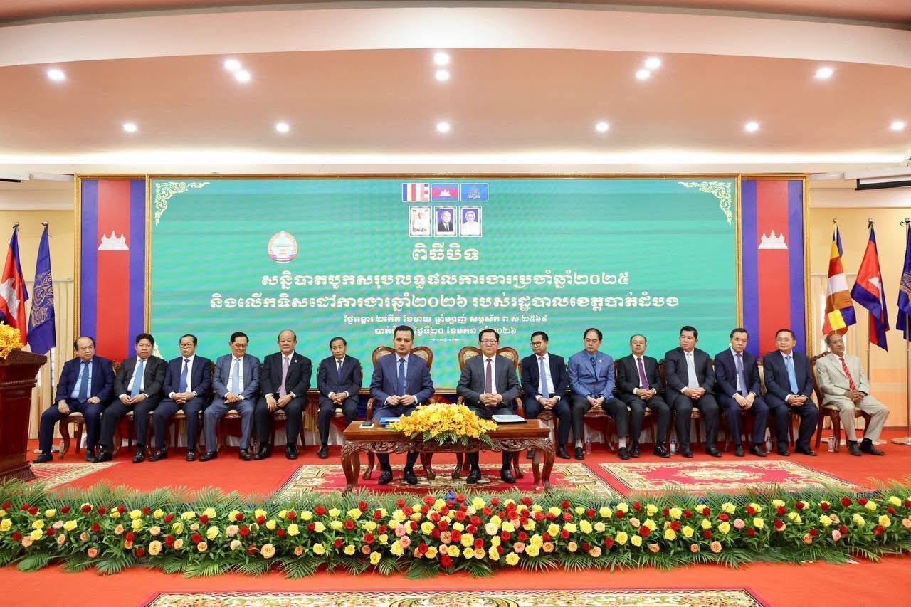 ខេត្តបាត់ដំបង ៖ លោកអភិសន្តិបណ្ឌិត ស សុខា ឧបនាយករដ្ឋមន្ត្រី រដ្ឋមន្រ្តីក្រសួងមហាផ្ទៃ បានផ្ដល់អនុសាសន៍ណែនាំដល់រដ្ឋបាលខេត្តបាត់ដំបង អាជ្ញាធរមានសមត្ថកិច្ច និងកងកម្លាំងប្រដាប់អាវុធគ្រប់លំដាប់ថ្នាក់ ត្រូវយកចិត្តទុកដាក់ប្ដេជ្ញារួមគ្នាខិតខំអនុវត្តឱ្យសម្រេចបានលទ្ធផលល្អប្រសើរក្នុងឆ្នាំ២០២៦នេះ ជាពិសេសការពង្រឹងសន្តិភាព និងស្ថិរភាពនយោបាយ។