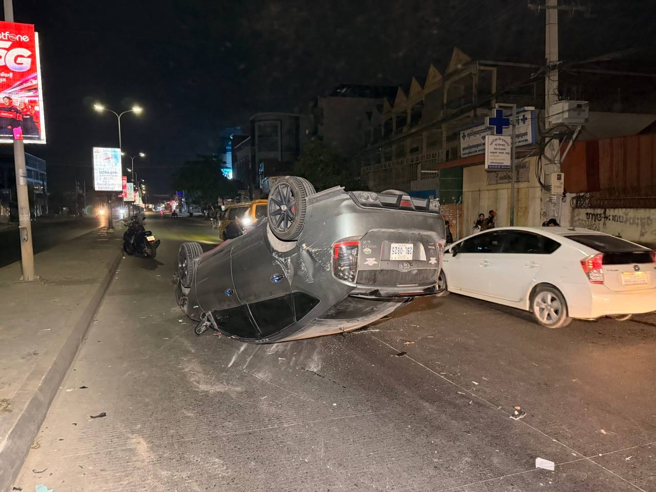 ភ្នំពេញ៖ បុរសម្នាក់ទំនងជាងងុយដេក រឺស្រវឹងបានបេីករងយន្ត TOYOTA Prius ក្នុងល្បឿនលឿនរេចង្កូតទៅបុកខឿនពុះចែកផ្លូវបណ្តាលឲ្យរងការខូចខាតរថយន្តក្រឡាប់ផ្ងាជេីង បង្កការភ្ញាក់ផ្អេីលកាលពីវេលាម៉ោង៣:៤០នាទីទៀបភ្លឺ ថ្ងៃទី០៣ ខែកុម្ភៈ ឆ្នាំ២០២៦ ស្ថិតតាមបណ្ដោយផ្លូវវេងស្រេង សង្កាត់ចោមចៅទី២ ខណ្ឌពោធិ៍សែនជ័យ រាជធានីភ្នំពេញ។