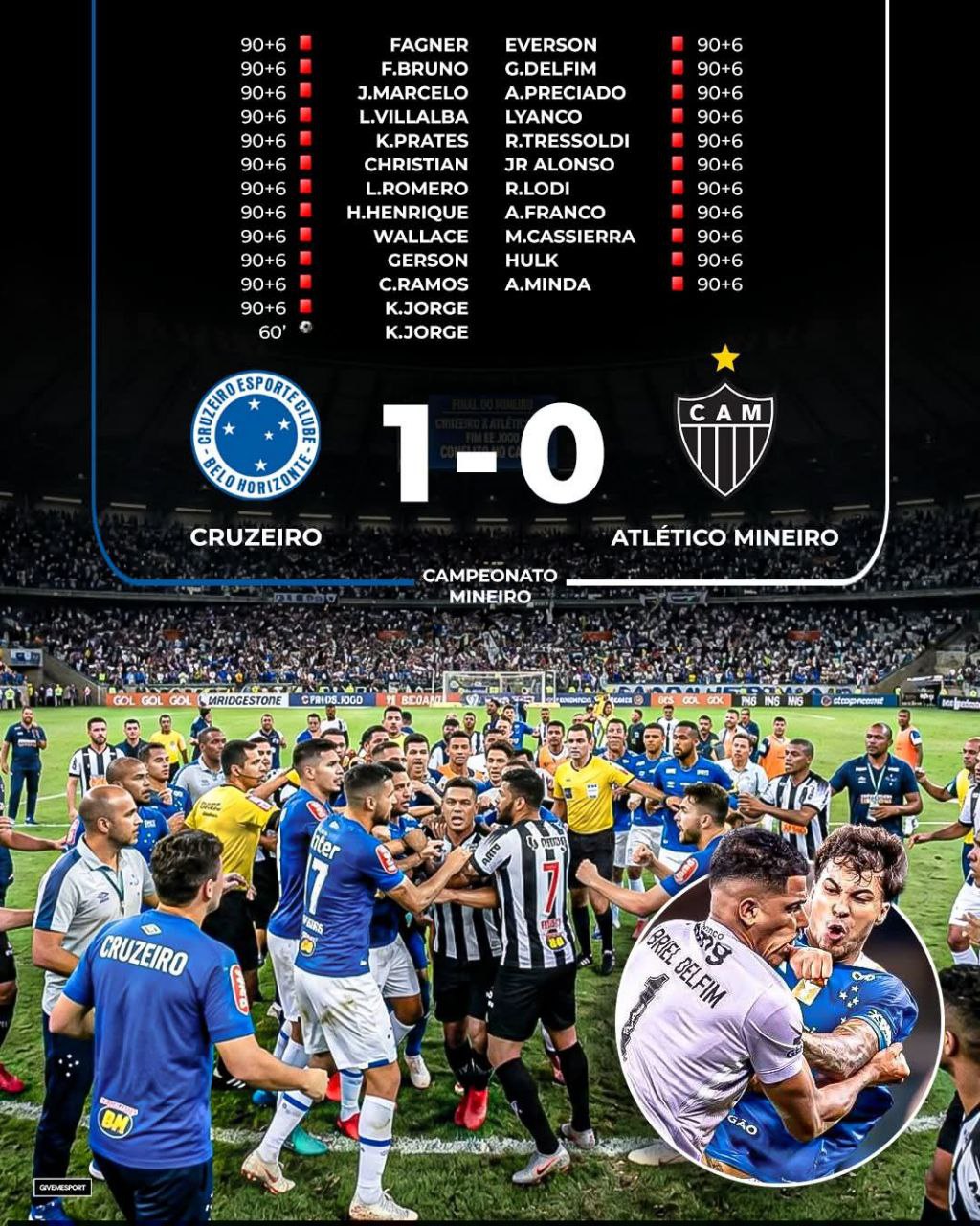 ការប្រឈមមុខដាក់គ្នាដ៏ធំបានចាប់ផ្តើមនៅពេលដែលអ្នកចាំទី Everson របស់ Atletico បានរុញ Christian ទៅដី ហើយលុតជង្គង់របស់គាត់នៅលើទ្រូងរបស់ខ្សែបម្រើ Cruzeiro ដែលបានប៉ះទង្គិចជាមួយគាត់។មិត្តរួមក្រុមរបស់ Christian បានប្រឈមមុខជាមួយ Everson ភ្លាមៗ ដោយបានរុញអ្នកចាំទីទៅលើបង្គោលទី ដែលបង្កបញ្ហាកាន់តែធំ នៅពេលដែលមានអ្នកលេងច្រើនចូលរួម ខណៈបុគ្គលិកសន្តិសុខព្យាយាមបំបែកក្រុម។