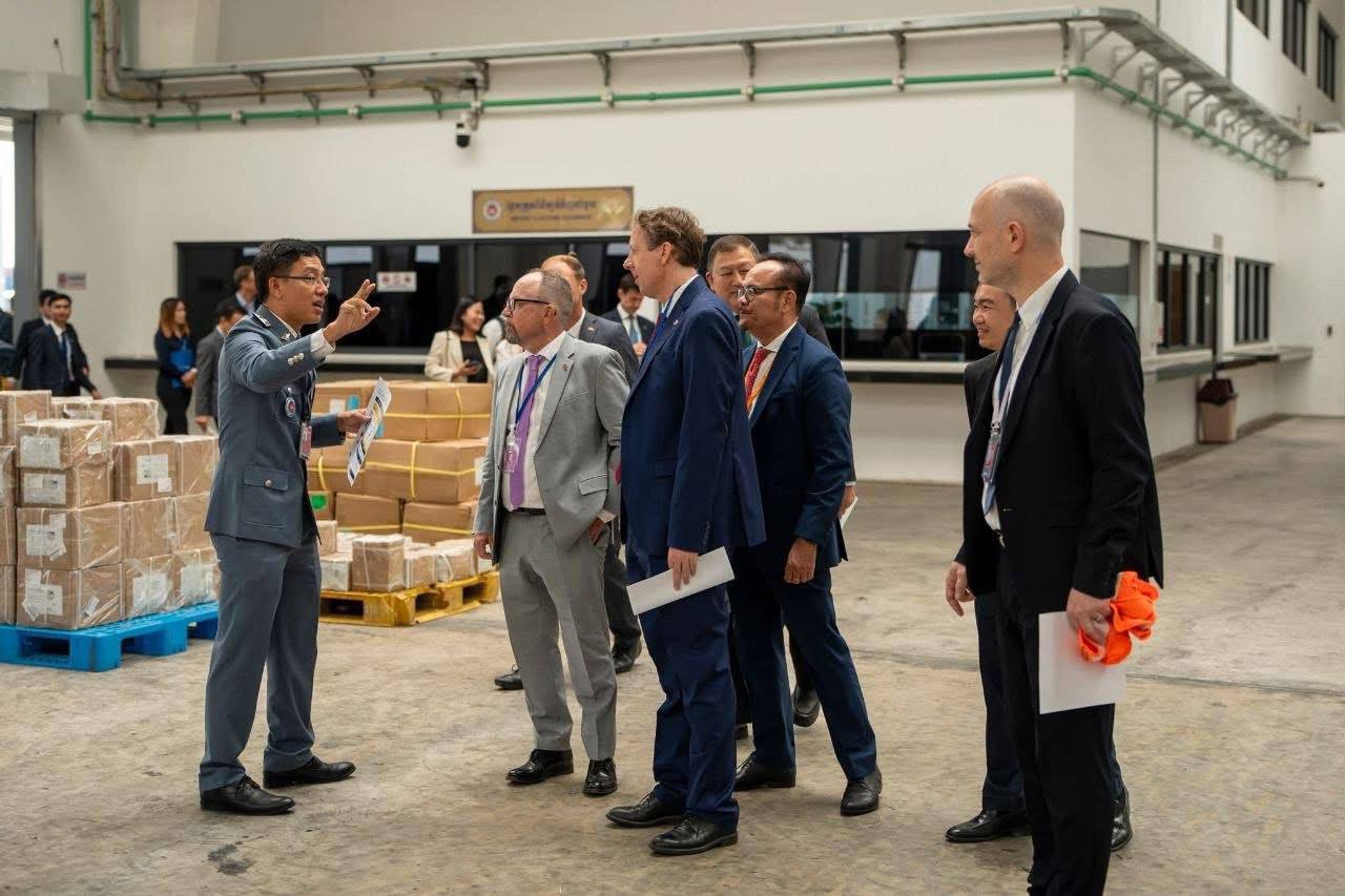 ភ្នំពេញ ៖ យោងតាមការបង្ហោះផ្សាយរបស់ស្ថានទូតនៃសាធារណរដ្ឋសហព័ន្ធអាល្លឺម៉ង់ នៅថ្ងៃទី២៨ ខែមេសា ឆ្នាំ២០២៦ បានឱ្យដឹងថា ឯកអគ្គរដ្ឋទូតអាល្លឺម៉ង់ លោក Stefan Messerer រួមជាមួយឯកអគ្គរដ្ឋទូតសហភាពអឺរ៉ុប លោក Igor Driesmans និងតំណាងមកពីក្រសួង និងដៃគូសំខាន់ៗ បានអញ្ជើញទៅទស្សនកិច្ចនៅអាកាសយានដ្ឋានអន្តរជាតិតេជោថ្មី ដើម្បីឃើញដោយផ្ទាល់នូវរបៀបដែលកិច្ចគាំទ្ររួមគ្នារបស់យើងកំពុងជួយដល់ការធ្វើទំនើបកម្មគយ និងបង្កើនប្រសិទ្ធភាពពាណិជ្ជកម្ម។