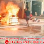 ដោយសារការធ្វេសប្រហែសបូមសាំងដាក់ដប ផ្ទុះឆេះឡានអស់១កំណាត់ និងម៉ូតូ១គ្រឿងឆេះហ្មត់ឈឹង