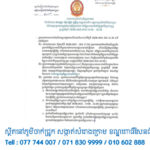 ខេត្តព្រះសីហនុ៖ រដ្ឋបាលខេត្តព្រះសីហនុ នៅព្រឹកថ្ងៃចន្ទទី០១ ខែកញ្ញា ឆ្នាំ២០២៥នេះ សូមជម្រាបជូន លោក-លោកស្រី ជាប្រជាពលរដ្ឋដែលរស់នៅតាមដងផ្លូវ ជាប់របងអាកាសយានដ្ឋានអន្តរជាតិខេត្តព្រះសីហនុ ជ្រាបថា អនុលោមតាមលិខិតលេខ ៦៥៥ សជណ.ដប ចុះថ្ងៃទី០៦ ខែកក្កដា ... Read More »