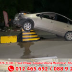ជនជាតចិនបេីករថយន្តបុកក្បាលនាគថ្មពុះចែកទ្រូងផ្លូវហោះគង់ជាប់ទៅមុខលែងរួច